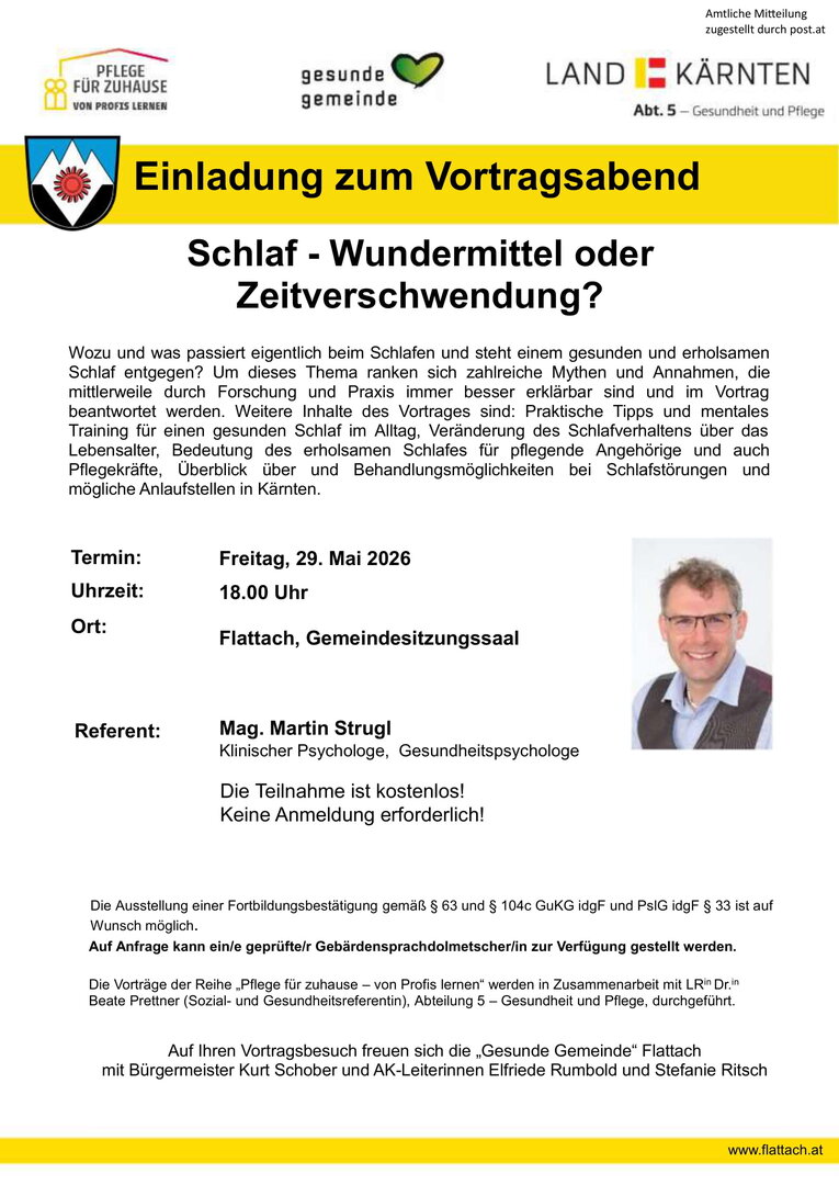 Schlaf - Wundermittel oder Zeitverschwendung - Vortrag von Mag. Martin Strugl