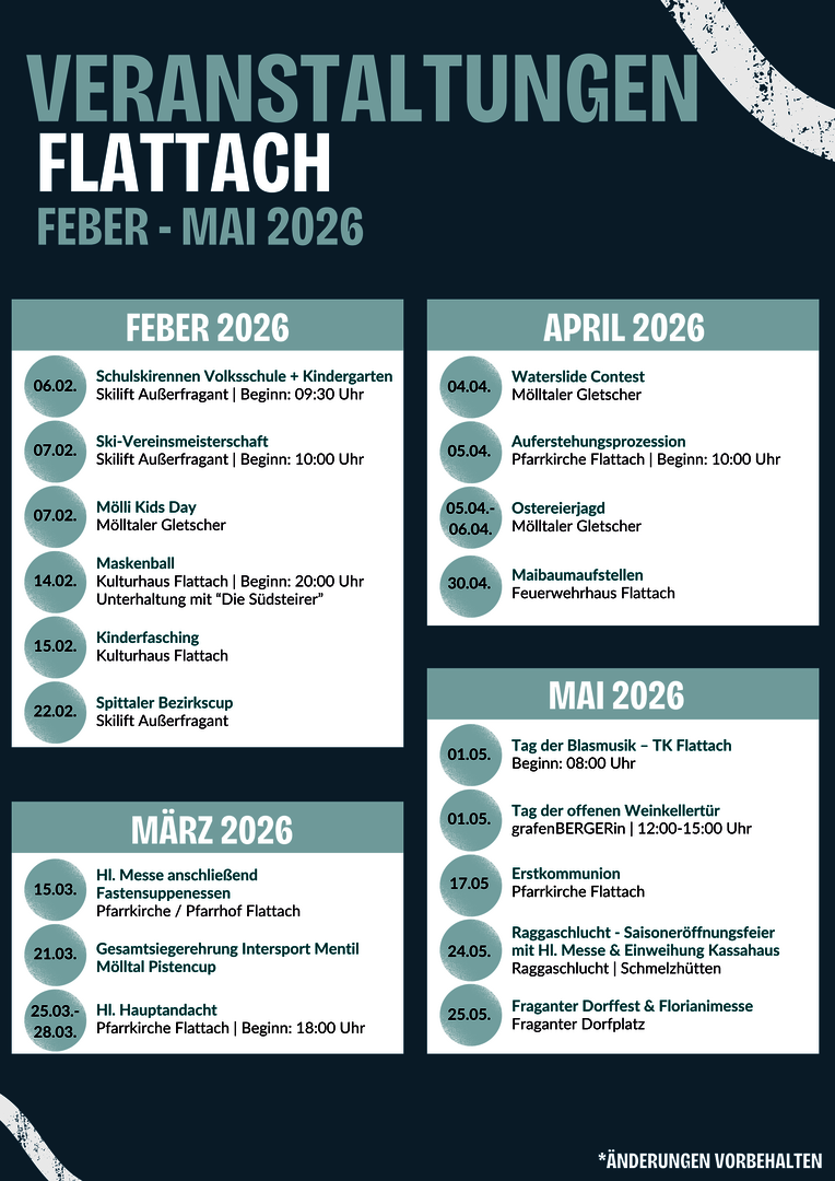 Übersicht der Termine der Gemeinde Flattach